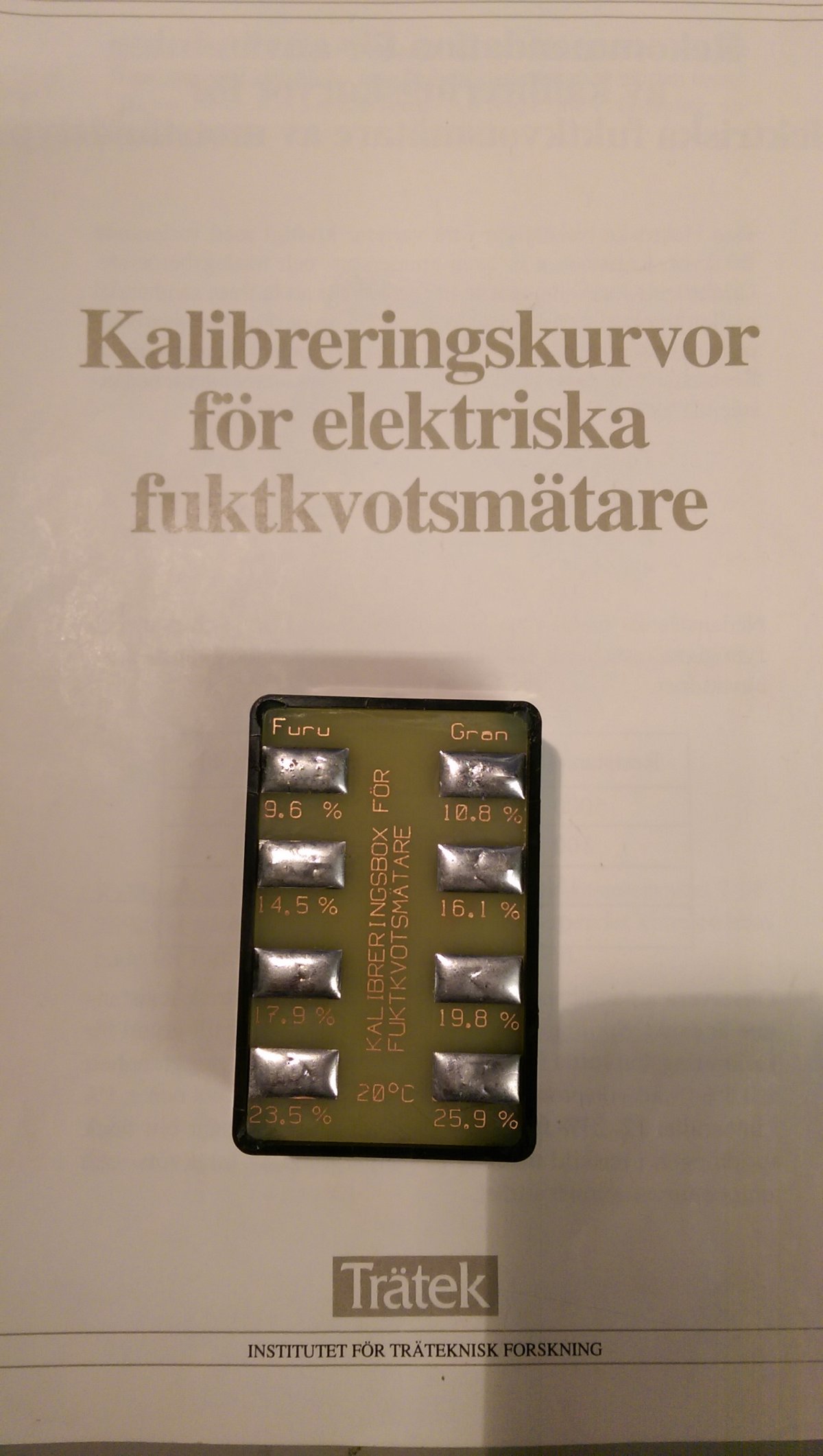 formler mellan resistans och fuktkvot på nordisk furu och gran. Kalibreringsblocket kan sändas till RISE (SP Trä) för kontroll och certifiering ger Er ett referensverktyg för kontroll av fuktkvotsmätarna. Era handmätare kan kontrolleras med jämna tidsintervall, ca 6 veckor mot blocket och blocket i sin tur kan kontrolleras med ca 1-2 års mellanrum. Länk till RISE: